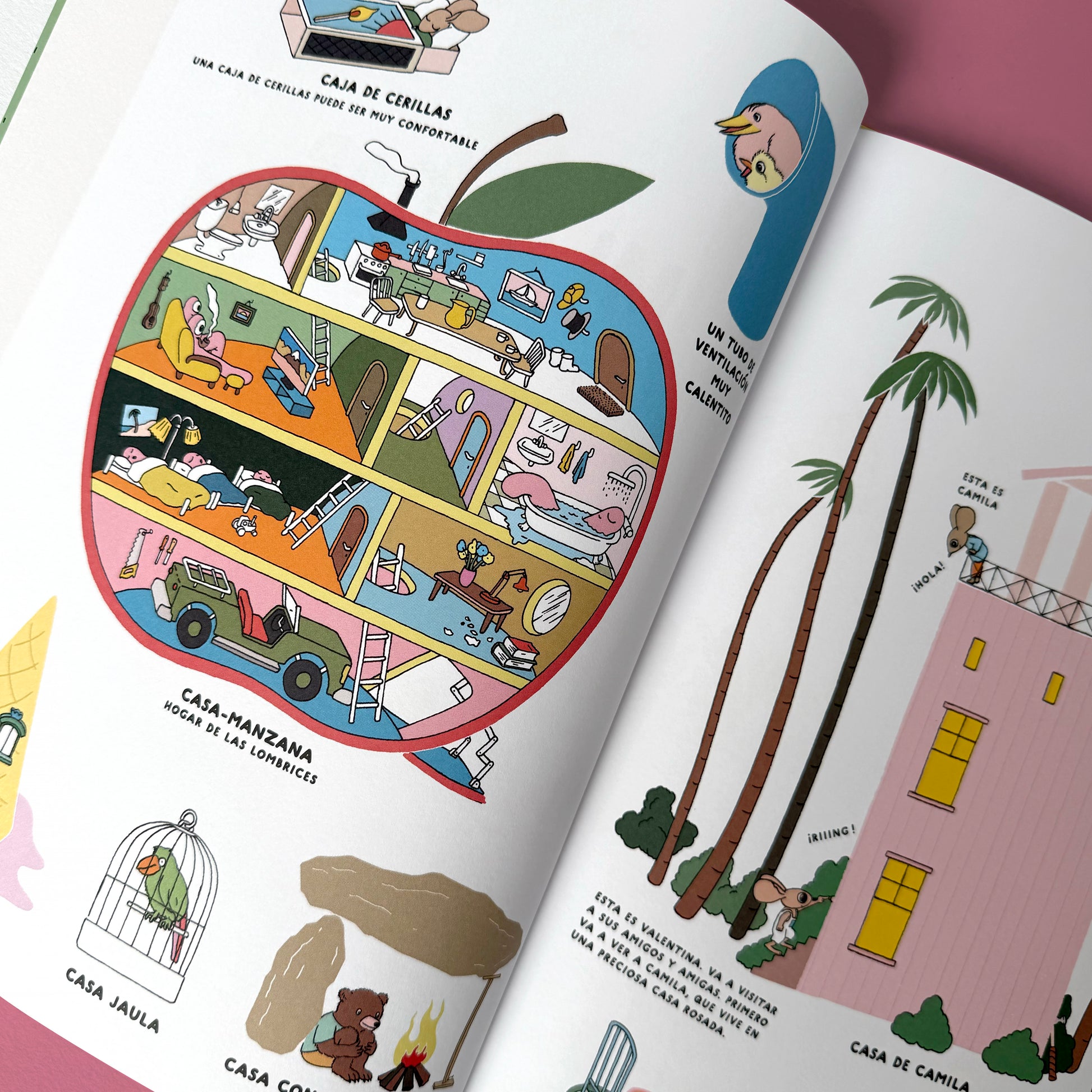 En este libro aparecen todo tipo de hogares: refugios simples, casas curiosas, construcciones inesperadas y también ejemplos de arquitectura moderna. Carl Johanson juega con estas ideas con mucho color, humor y personajes que invitan a recorrer cada página con calma.